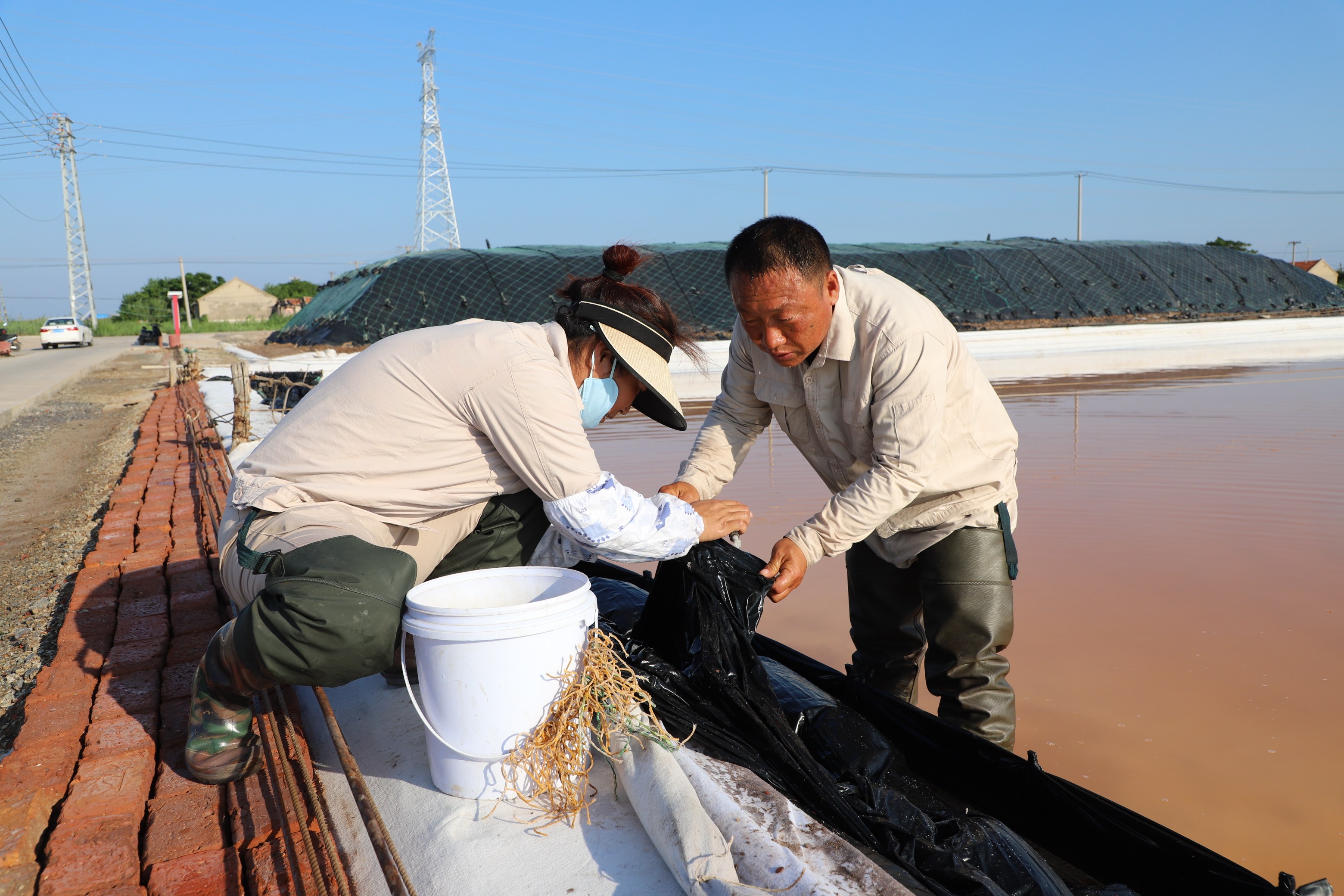 日曬制鹽的生產(chǎn)黃金季節(jié),也是職工最辛苦的一段時(shí)期。驕陽烈日下,萬畝銀灘鹵水潺潺、“五彩斑斕”,一線職工的戶外勞作泡在熱氣蒸人的鹵水里修補(bǔ)塑布、整修池堰、更新塑布揮汗如雨,池子里長著鹽,身上結(jié)著鹽霜,黑得發(fā)亮的皮膚在一次次曬脫皮后成了天然的“保護(hù)色”。一面面黨旗高高飄揚(yáng),一枚枚黨徽閃耀奪目,同心協(xié)力筑起了一座座堅(jiān)不可摧的“紅色堡壘”,奏響了一曲倍增發(fā)展、砥礪奮進(jìn)的“紅色戰(zhàn)歌”,為這個(gè)“鹽”炎夏日增添了一抹亮麗的底色。(新河制鹽)