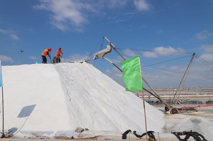 國慶節(jié)期間當(dāng)大多數(shù)人正在歡樂悠閑、歡度國慶長假時,新河制鹽分公司卻是機(jī)械轟鳴,一片繁忙。為了確保扒鹽進(jìn)度,10月3日上午8時,新河制鹽分公司四臺扒鹽機(jī)組全部開機(jī)扒鹽,一線職工放棄節(jié)假日休息,加班加點,以飽滿的精神狀態(tài)戰(zhàn)斗在扒鹽陣地上。