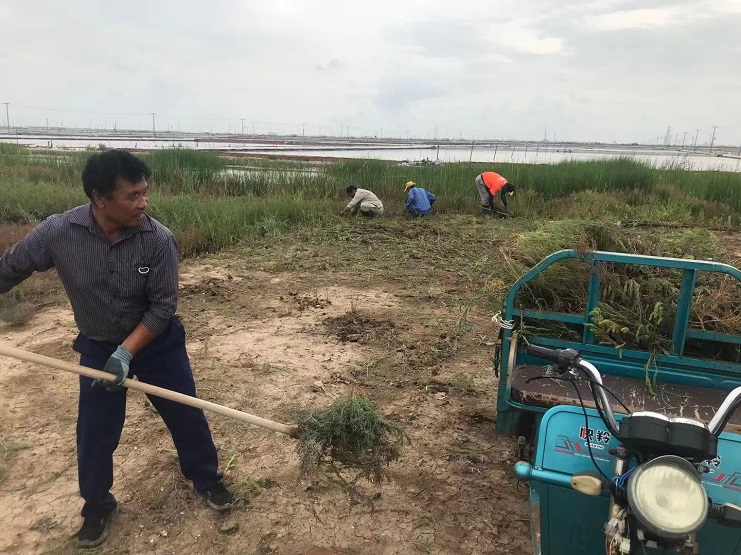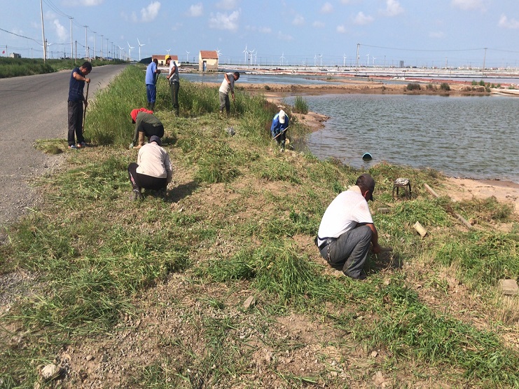 埒南制鹽分公司開展灘場文明建設(shè),對各班灘場文明進(jìn)行集體整頓。完成塑料布整理、清理溝道、值班室整理、鹵臺(tái)雜物清除等工作,主要是清理灘內(nèi)雜物雜草,對值班室、大小機(jī)房附近雜草進(jìn)行清理。并對扒鹽機(jī)械進(jìn)行統(tǒng)一保養(yǎng)、擺放,為即將到來的秋扒奠定基礎(chǔ)。圖為工人正為灘內(nèi)雜草進(jìn)行清理。(孟然)