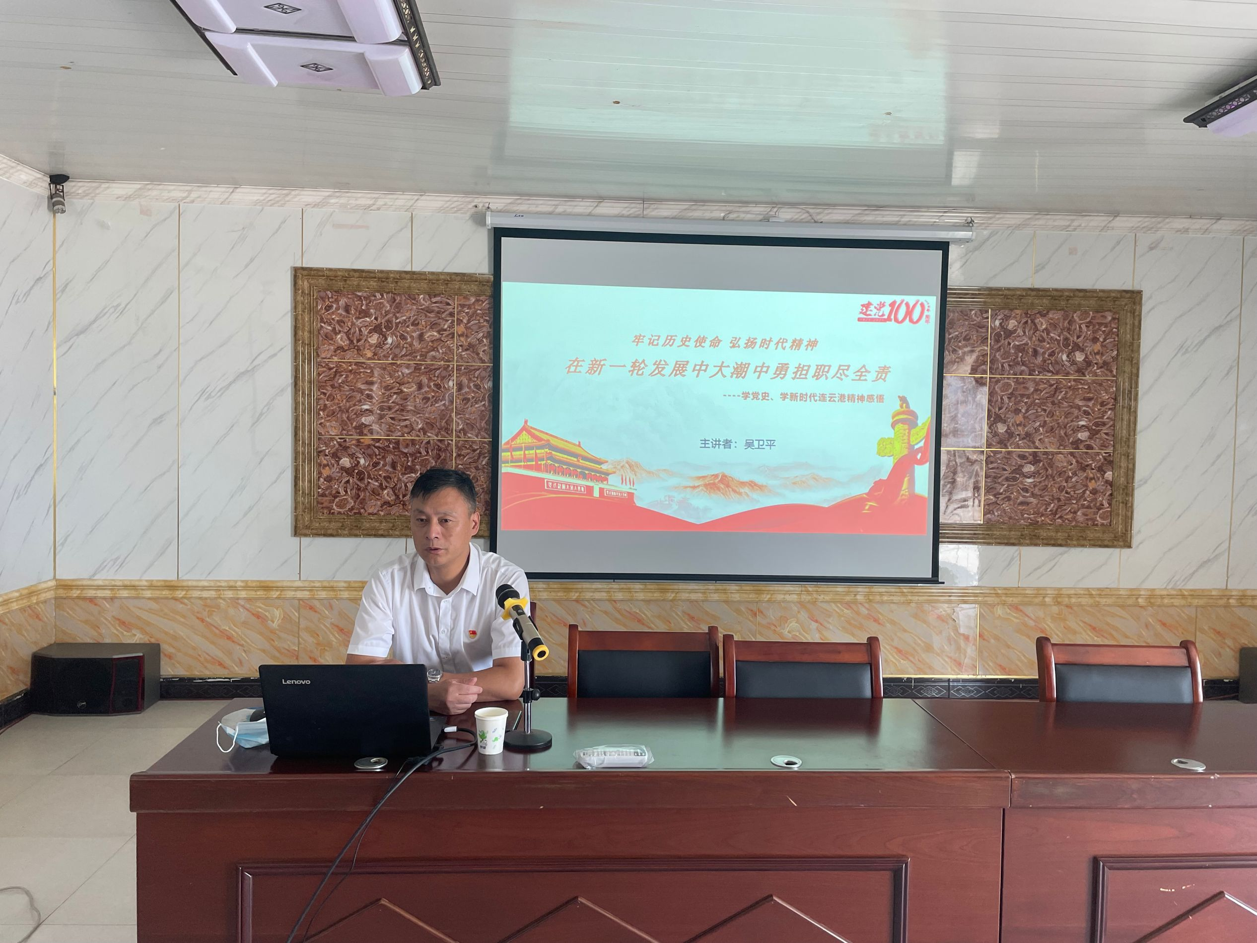 吳衛(wèi)平以《在新一輪發(fā)展中大潮中勇?lián)?zé),盡全責(zé)---學(xué)黨史,學(xué)新時(shí)代連云港精神感悟》為黨課主題,圍繞四個(gè)章節(jié)展開(kāi)講述:第一章、學(xué)黨史,銘記革命先輩的無(wú)私奉獻(xiàn)精神,提高政治意識(shí),第二章、學(xué)講話,堅(jiān)信中國(guó)特色社會(huì)主義發(fā)展方向,提升政治站位,第三章、學(xué)時(shí)代,堅(jiān)定新時(shí)代連云港精神必勝信心,踐行高質(zhì)量發(fā)展,第四章、學(xué)本領(lǐng),提升理論指導(dǎo)實(shí)踐能力素養(yǎng),樹(shù)立奮斗決心。