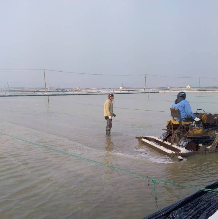 埒南制鹽分公司抓緊做好池鹽破碴工作,為即將開始的春季扒鹽作好準(zhǔn)備,利用5臺(tái)唐30對(duì)去年下半年未參加扒鹽的格塊進(jìn)行機(jī)械破碴,目前已經(jīng)破碴70%以上。圖為職工利用唐30在池內(nèi)破碴。(埒宣)