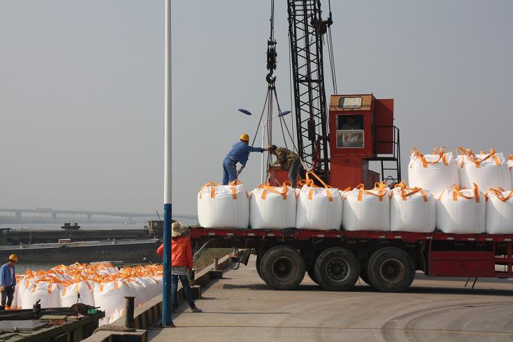 4月30日上午9時(shí)許,隨著一聲汽車長笛,一輛載有近40噸化工物資的卡車徐徐停靠在宵洋物流公司五灌河碼頭邊,緊接著碼頭鐵臂起舞,機(jī)械操作工嫻熟地操縱著塔吊機(jī)械,準(zhǔn)確地將一包包噸貸物資裝卸在碼頭邊的貨船中。。。。。。自此,一輛輛滿載40余噸貨物的卡車源源不斷向碼頭駛來。