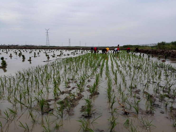 時下正值水稻插秧的大好時節(jié)。6月5日,實業(yè)公司組織人員四十余人,對農(nóng)業(yè)分公司埒南片區(qū)的90畝稻田進行適時插秧。歷時3天,今日即可完成插秧任務(wù)。