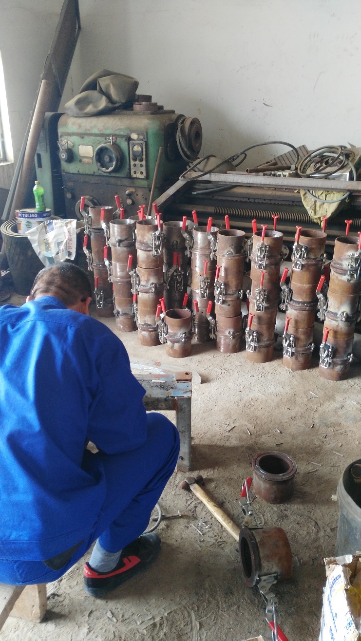 為提高扒鹽管道安裝速度,減輕鹽業(yè)工人勞動負荷,連日來,機電服務(wù)公司制作人員認真進行管道快接頭制作,他們分工負責(zé),2人專門焊接,4人進行管道接頭安裝,預(yù)計本周五一臺機組63節(jié)管道,4個彎頭制作完成,下周進行實際試用。(機電服務(wù)公司)