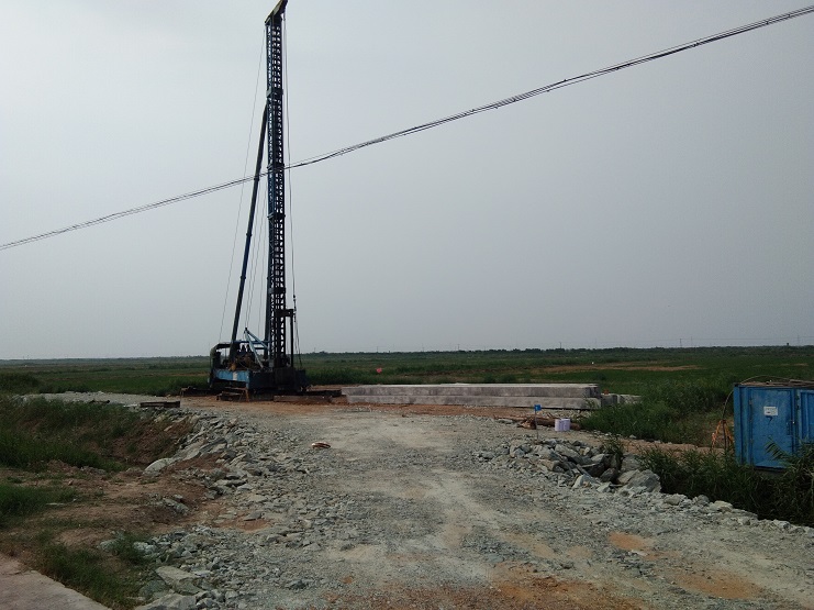 坐落在西旺水產(chǎn)公司農(nóng)田區(qū)域內(nèi)的其中的8個風力發(fā)電機建設項目,繼續(xù)協(xié)調(diào)、征地、便道鋪建完工后,目前進入樁基施工階段。圖為樁基施工現(xiàn)場(西旺宣)