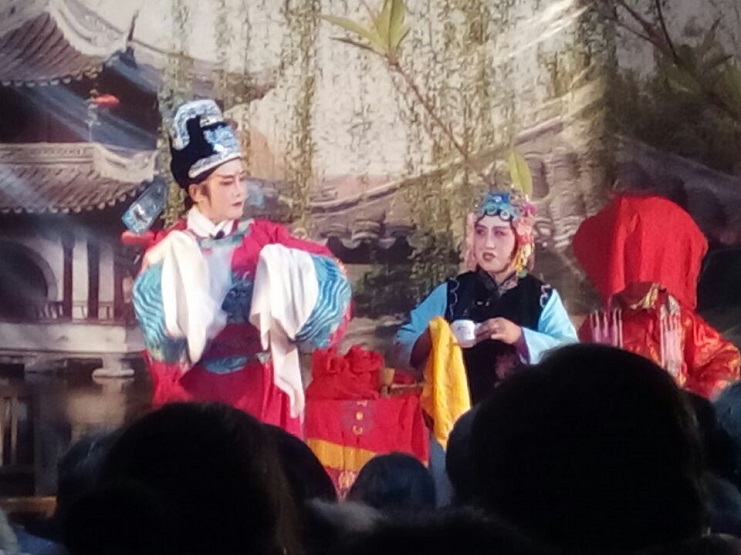 優(yōu)美的身段、委婉的唱腔,在這幾個(gè)小時(shí)的時(shí)間里,淮海劇團(tuán)的演員為觀眾送上了淮海戲《狀元與乞丐》、《三拜堂》。這些曲目通俗易懂,老少皆宜,深受居民喜愛(ài),演員們的精彩表演也博得了觀眾的一致好評(píng),有居民說(shuō)“他們的演出給我們帶來(lái)了活力,精彩的演出令人難以忘記,可以說(shuō)是為我們獻(xiàn)上的一臺(tái)精彩戲曲大餐。”(唐蕾榮)