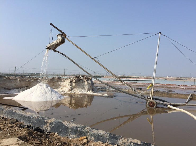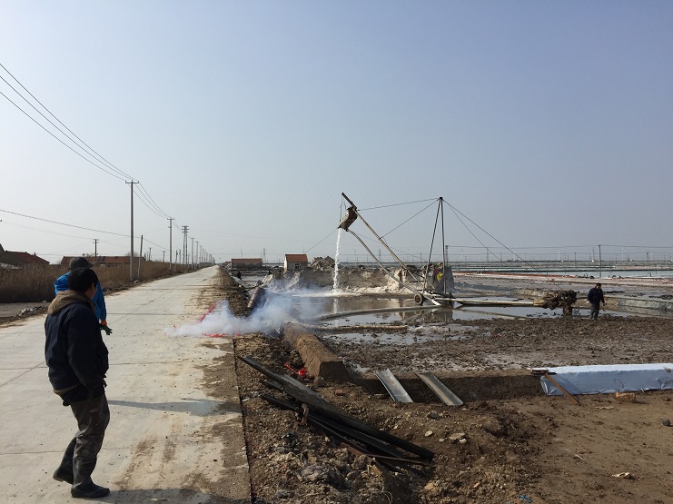 2月25日上午九點十八分,伴隨著鞭炮聲清脆響起,新河制鹽分公司五班二號扒鹽機(jī)組輸鹽大架銀瀑飛濺,拉開了新河制鹽春季扒鹽的序幕。