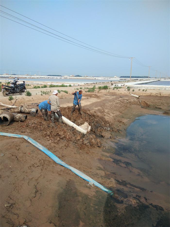 由于灘內(nèi)土塘老出籠銹蝕損壞,淤泥堵塞,不便于土塘水互相調(diào)用,原先班組主要是用機泵進行調(diào)水,增加了費用的支出,因此新河制鹽公司對16個班組的原有土塘節(jié)制全部更換成塑料彎頭,這種新型節(jié)制在使用中不易堵塞,封閉好,操作簡便,工人們正在按照公司的要求搶時間把彎頭裝好。(新河制鹽趙斯中)
