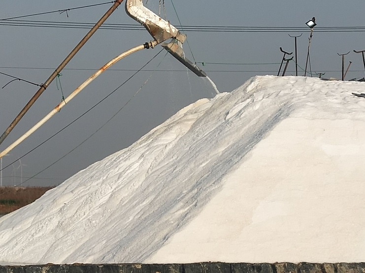 目前上廩原鹽潔白如雪,氯化鈉百分之96左右,硫酸根離子百分之0.3左右。