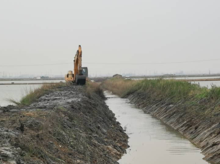 為了保障養(yǎng)殖正常生產(chǎn),營造良好的投資環(huán)境。近期,養(yǎng)殖服務(wù)公司配合投資發(fā)展部對部分淤塞嚴(yán)重,長滿雜草的海水養(yǎng)殖池塘進(jìn)、排水渠道進(jìn)行疏通。圖為南翼綠化工程公司正在用挖掘機(jī)械理順進(jìn)、排水渠道。(養(yǎng)殖服務(wù))
