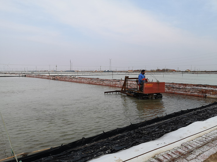 破碴勤、破碴透,才能保證原鹽生產的旺產增收。進入2月下旬,雖然受新冠肺炎疫情影響,相關工作較往年延遲,但新河制鹽分公司科學組織,嚴密安排,根據春季扒鹽節(jié)奏,合理調配破碴機械,率先啟動原鹽破碴工作。在十班破茬碴現(xiàn)場,班組結晶池內熱火朝天,只見一臺臺破碴機快速來回穿梭,正在對擬春扒格塊進行機械破碴。勞模創(chuàng)新工作室成員、班長匡洪忠查看破碴的鹽池板后,臉上露出滿意的微笑,他說:“通過近幾年的小改小革,現(xiàn)在機械破碴格塊只要一個小時就全部到位,而且質量比人工破碴好,大大地減輕了職工勞動負荷。”