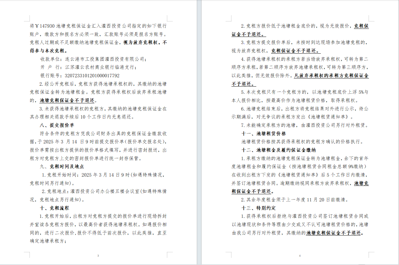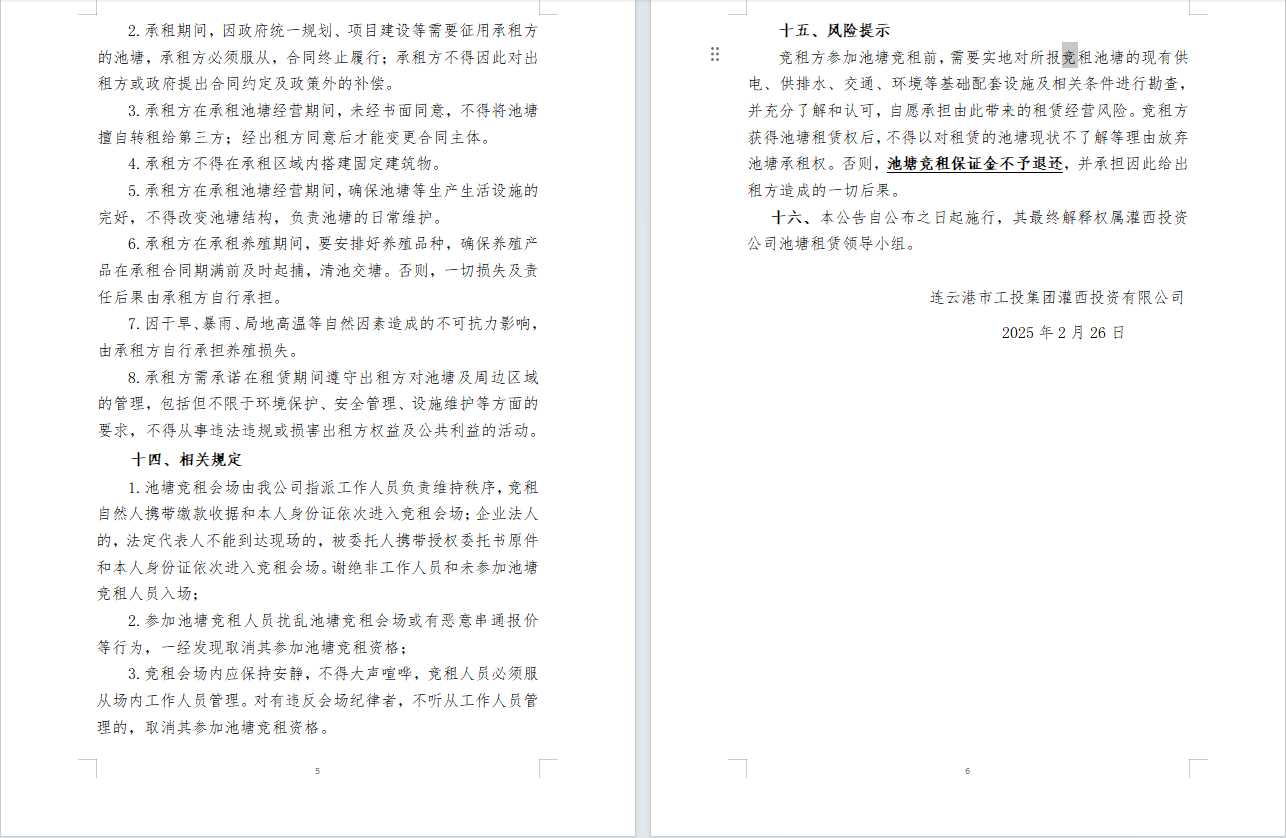 連云港市工投集團(tuán)灌西投資公司2025年度淡水養(yǎng)殖池塘公開競租公告