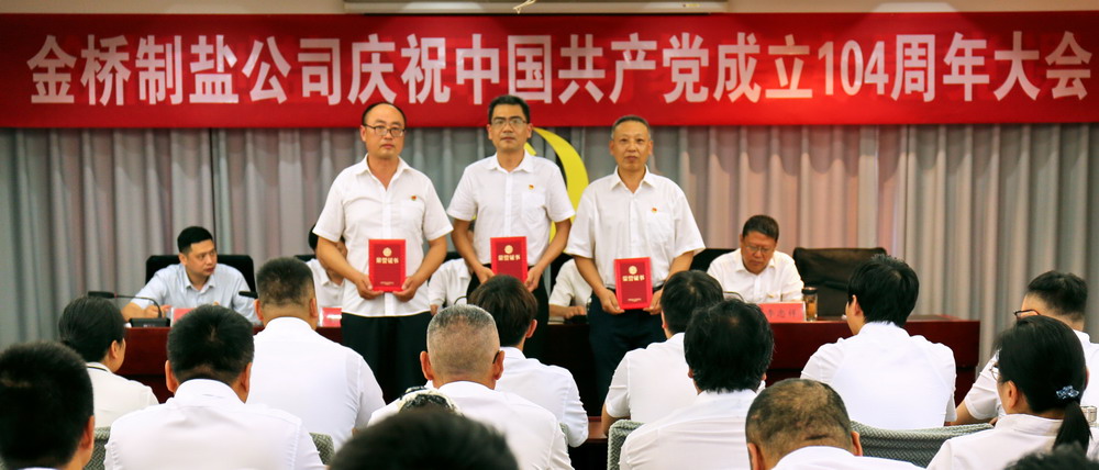 7月1日上午,金橋制鹽公司在三樓會(huì)議室召開(kāi)慶祝中國(guó)共產(chǎn)黨成立104周年大會(huì)。公司領(lǐng)導(dǎo)班子成員,公司中層副職以上人員、受表彰人員和新黨員參加了會(huì)議,大會(huì)由公司黨委副書(shū)記、紀(jì)委書(shū)記、工會(huì)主席張銘楊主持。