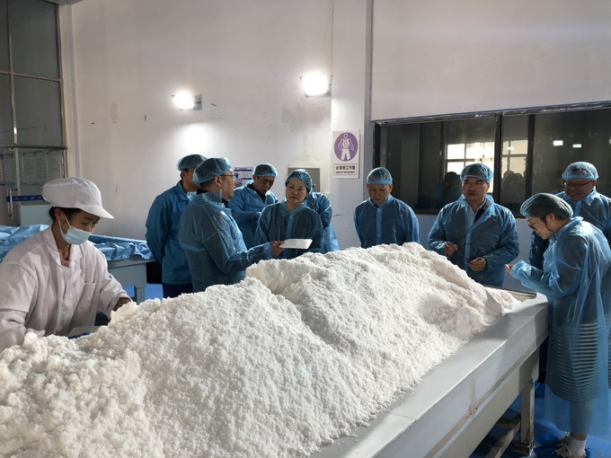 朱桂玉對(duì)劉偉明一行的到來(lái)表示熱烈歡迎,他指出,多年來(lái),雙方合作愉快,實(shí)現(xiàn)了優(yōu)勢(shì)互補(bǔ),互利共贏。金橋制鹽公司將一如既往地做好生產(chǎn)各項(xiàng)工作,全力服務(wù)廣鹽集團(tuán)。劉偉明一行相繼參觀了公司雪花鹽車間、包裝鹽車間、加工鹽車間,詳細(xì)了解了公司鹽產(chǎn)品產(chǎn)銷情況。雙方就加強(qiáng)雪花鹽合作事宜進(jìn)行了深入洽談,并表示將進(jìn)一步精誠(chéng)合作,增進(jìn)友誼,攜手開(kāi)創(chuàng)雙贏新篇章。