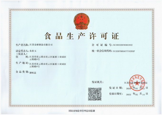 5月15日,我公司順利獲得《食品生產(chǎn)許可證》,成為江蘇省第一家獲得《食品生產(chǎn)許可證》的國家食鹽定點(diǎn)生產(chǎn)企業(yè)。