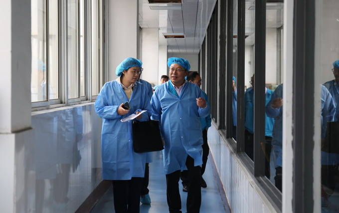 10月15日上午,連云港市市場監(jiān)督管理局食品生產(chǎn)處副處長梁晶晶、顧為民帶領(lǐng)檢查員一行來我公司開展食鹽定點生產(chǎn)企業(yè)日常監(jiān)督檢查和飛行檢查。公司董事長、黨委書記、總經(jīng)理朱桂玉,副總經(jīng)理田磊、何啟明陪同。