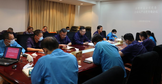 9月29日下午,我公司黨委召開(kāi)全面從嚴(yán)治黨專題會(huì)議,黨委副書(shū)記、紀(jì)委書(shū)記、工會(huì)主席曹開(kāi)明主持,公司領(lǐng)導(dǎo)班子成員、各車間單位黨政負(fù)責(zé)人、各部室負(fù)責(zé)人參會(huì)。