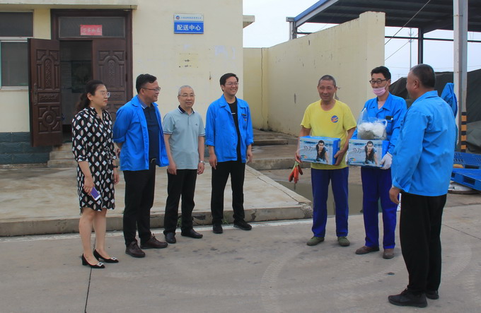 6月24日,我公司工會(huì)開(kāi)展夏季“送清涼”活動(dòng),黨委副書(shū)記、工會(huì)主席曹開(kāi)明、副總經(jīng)理張學(xué)峰和田磊一行,為高溫下的一線職工送去了綠豆、白糖、飲料、茶葉等防暑降溫品。