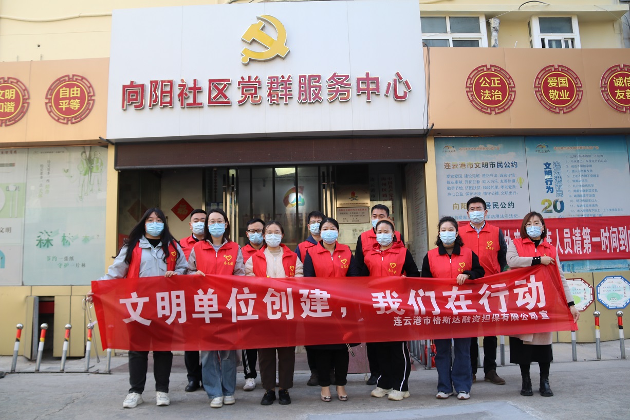 為發(fā)揚(yáng)志愿者精神,響應(yīng)海州區(qū)文明辦開展創(chuàng)建全國文明城市“文明單位創(chuàng)建我們在行動”活動,11月4日,金融板塊組織17名黨員、積極分子、青年員工參加向陽社區(qū)志愿服務(wù)活動。