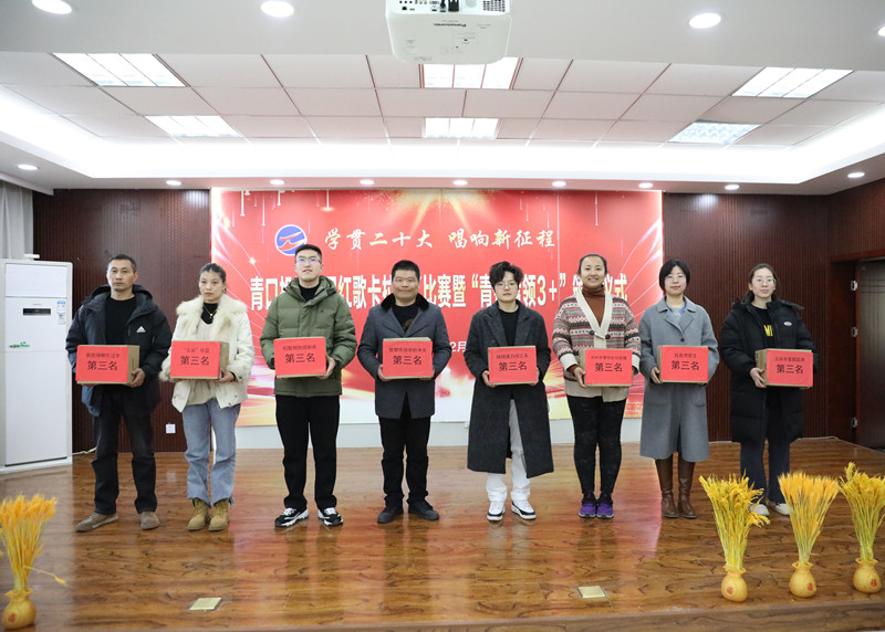 “再唱山歌給黨聽,我把歌兒獻給你,五十六個名族再唱山歌喲,山歌給黨聽。”在“學貫二十大 唱響新征程”青口投資公司紅歌卡拉OK比賽暨“青投藍領3+”頒聘儀式中,一首《再唱山歌給黨聽》為青口投資公司第四屆豐收節(jié)畫上圓滿句號。