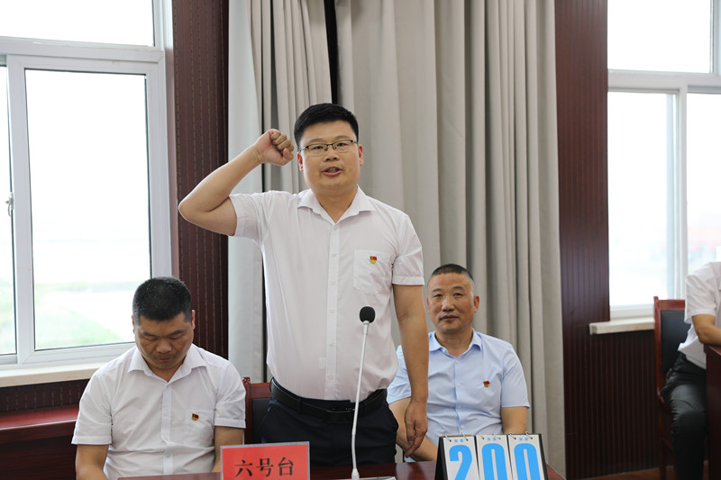 “入黨誓詞的內(nèi)容是什么?”決賽現(xiàn)場搶答環(huán)節(jié)還展現(xiàn)深情的一幕。來自機(jī)關(guān)黨支部男子代表隊(duì)的盧忠歌搶到此題后,當(dāng)即舉起右拳,現(xiàn)場進(jìn)行入黨宣誓,既正確地大聲回答出問題,也讓現(xiàn)場全體黨員心靈上受到震撼,得到共鳴。