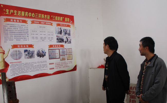 在生產(chǎn)生活服務(wù)中心揚(yáng)水站班組,與會人員實(shí)地觀摩了“三組聯(lián)建”陣地建設(shè),詳細(xì)聽取了黨小組組長關(guān)于“三組”在聯(lián)建、聯(lián)動、聯(lián)學(xué)等方面的開展情況和取得的成效。