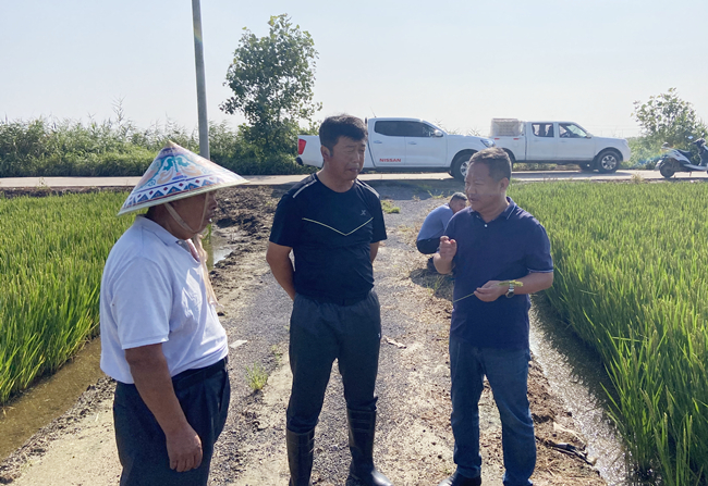 9月8日,公司副總經(jīng)理?xiàng)钍孛饕恍械酱笮罗r(nóng)場(chǎng)就當(dāng)前水稻主要病蟲防控工作開展調(diào)研指導(dǎo)。