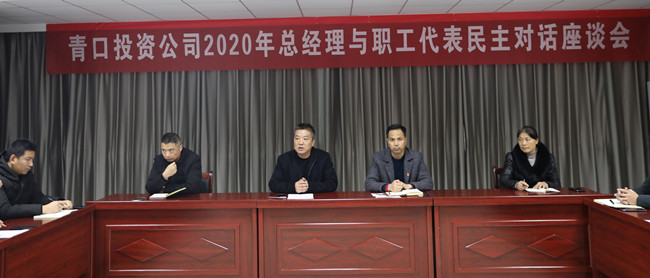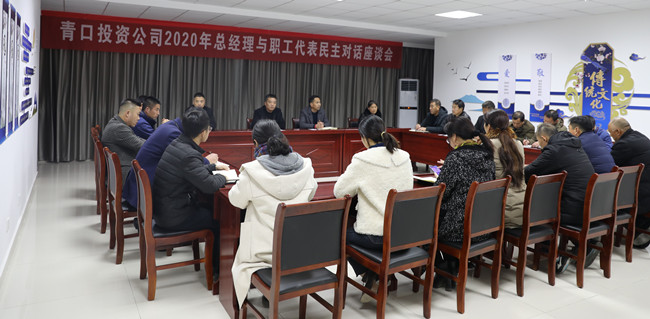 12月9日下午,在泰祥公司二樓會議室召開青口投資公司2020年總經(jīng)理與職工代表民主對話座談會,公司總經(jīng)理史祥平出席會議,工會主席梁永主持。職工代表們就工作中遇到的困難、生活福利保障、員工培訓(xùn)、公司未來規(guī)劃等熱點難點問題向總經(jīng)理提問,總經(jīng)理史祥平在耐心細(xì)致聽取職工代表們的問題后,一一詳細(xì)解答。