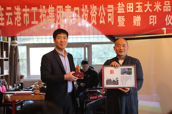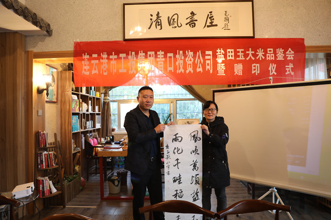 10月16日,青口投資公司米業(yè)營銷中心在海州區(qū)清風(fēng)書屋開展“鹽田玉大米品鑒會暨贈印活動”。投資公司董事長胡傳法、中國書法家協(xié)會會員汪鐵穎以及部分連云港市海州區(qū)書法家協(xié)會會員參加活動。