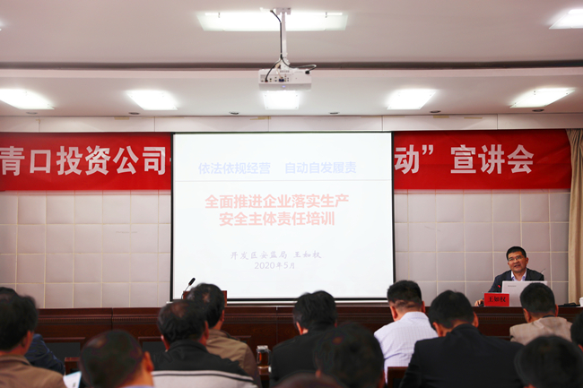 ? 為進(jìn)一步強(qiáng)化企業(yè)落實(shí)安全生產(chǎn)主體責(zé)任意識,推動(dòng)企業(yè)深入學(xué)習(xí)貫徹《企業(yè)落實(shí)安全生產(chǎn)主體責(zé)任重點(diǎn)事項(xiàng)清單》,5月14日下午,青口投資公司組織召開安全生產(chǎn)“春風(fēng)行動(dòng)”宣講會。公司領(lǐng)導(dǎo)班子成員、安委會成員、各單位黨政工負(fù)責(zé)人、安全管理人員和機(jī)關(guān)全體管理人員參加,副總經(jīng)理?xiàng)钍孛髦鞒帧?/span>