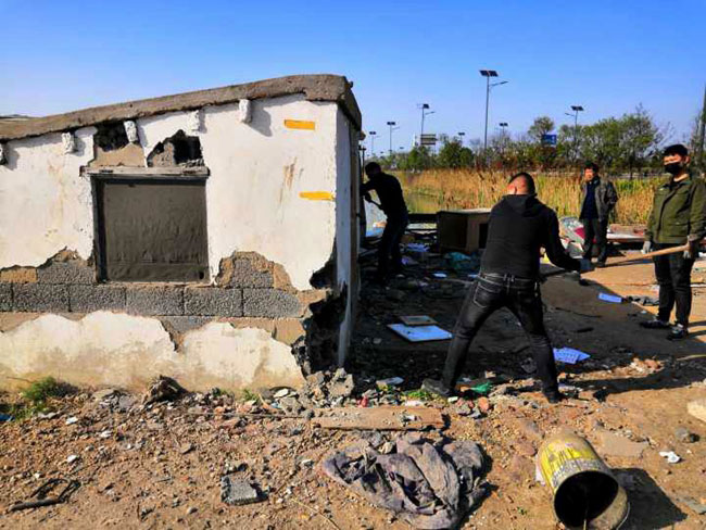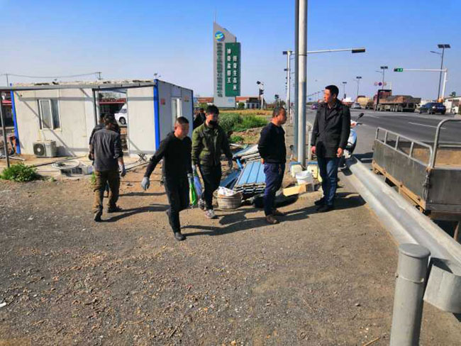 公司領(lǐng)導(dǎo)態(tài)度明確,一抓到底全面整治交通環(huán)境。摸清形勢(shì),多次召開整治工作專項(xiàng)會(huì)議,安排部署整治行動(dòng) , 公司領(lǐng)導(dǎo)放棄節(jié)假日,現(xiàn)場(chǎng)辦公。三洋、黃沙、大新作為主要牽頭單位,主動(dòng)扛起責(zé)任,挑起擔(dān)子,從泰祥公司抽調(diào)人力,大家齊心協(xié)力。按照時(shí)間節(jié)點(diǎn),倒排工期,掛圖作戰(zhàn),針對(duì)現(xiàn)場(chǎng)工作內(nèi)容,制定 “三步工作法”。一是深入塘頭養(yǎng)殖戶面對(duì)面交流,講明利害關(guān)系,做通群眾思想工作,確保整治行動(dòng)順利進(jìn)行;二 是 制定好拆除先后順序,調(diào)配需要的挖掘機(jī)、運(yùn)輸車輛等硬件設(shè)施,確保拆遷過程快速有力;三 是 對(duì)于已拆除的看護(hù)房,及時(shí)清理房屋碎石塊,筑牢地基,安排重建。