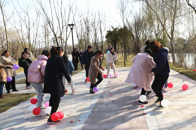 為使大家身心得到最大放松,投入戶外體驗(yàn)清新大自然,在絲路小鎮(zhèn)公園進(jìn)行了“三月女人天 別樣?jì)D女節(jié)”主題戶外活動(dòng)。游戲“你畫(huà)我猜”中,隊(duì)員們有的配合默契一猜既中,也有的用肢體艱難的比劃著,引的大家捧腹大笑?!安葰馇颉庇螒蚋亲尙F(xiàn)場(chǎng)氣氛達(dá)到沸點(diǎn),每人都放開(kāi)平日工作中的嚴(yán)謹(jǐn),放松心情在場(chǎng)地上追逐奔跑。大家在游戲中收獲了歡聲笑語(yǔ)及片片感動(dòng),同時(shí),通過(guò)游戲提高大家的合作意識(shí)和進(jìn)取精神,營(yíng)造濃郁節(jié)日氣氛。