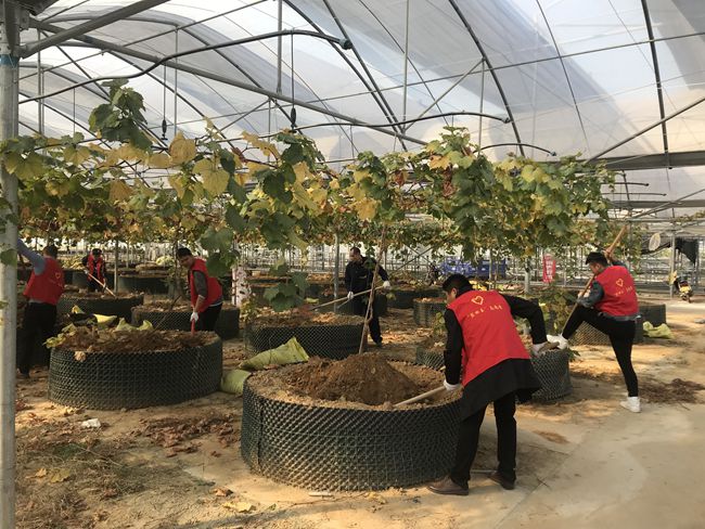 10月30日上午,青口投資公司團委組織團員青年前往育秧大棚參加志愿服務(wù),對200株限根葡萄施用有機肥,為來年掛果豐收蓄力。 (團委)