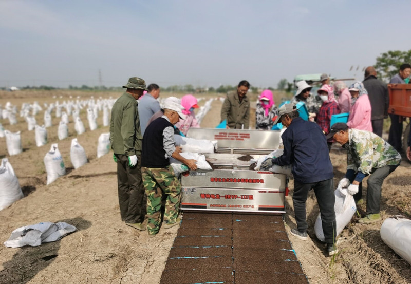5月9日,大新農(nóng)場全面啟動育秧作業(yè),工人們在水稻育秧播種機兩側(cè),分工有序地進行流水線育秧,確保農(nóng)業(yè)生產(chǎn)開好局、起好步。據(jù)統(tǒng)計,今年自營農(nóng)田共6228畝,預計需播機插秧27萬盤。(劉楊)