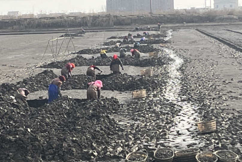 近日,黃沙分場(chǎng)部分池塘對(duì)已達(dá)到規(guī)格的縊蟶開始起捕銷售,為新一年的養(yǎng)殖生產(chǎn)、投放苗種做好準(zhǔn)備。(黃沙分場(chǎng))