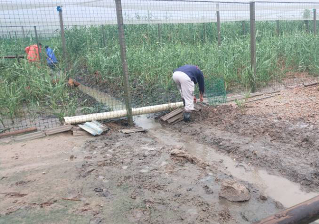 近期雨水較多,種養(yǎng)中心利用雨水天氣,配合施工單位避開高溫進(jìn)行排水道清理。將原排水河道清淤治理,并對(duì)排水河道采取鐵絲網(wǎng)加固加牢的措施,確保雨水期間雞舍排水系統(tǒng)暢通。(田鐘超)