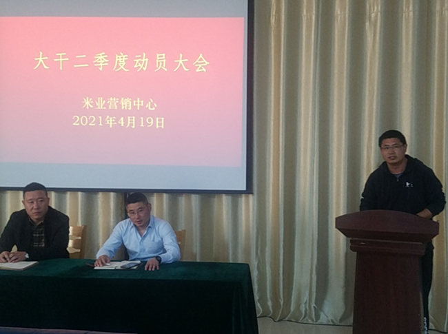 ? ? ? ?4月19日,米業(yè)營銷中心召開大干二季度動員大會,進一步貫徹落實投資公司二屆一次職代會暨第二次工代會會議精神,結合“崗位建新功、創(chuàng)效爭一流”大干二季度勞動競賽,規(guī)劃部署米業(yè)全年工作,分解全年銷售任務,以分解量化的季度指標,以月保季、以季保年,緊扣工作目標,明確責任分工,凝心聚力,共謀發(fā)展。