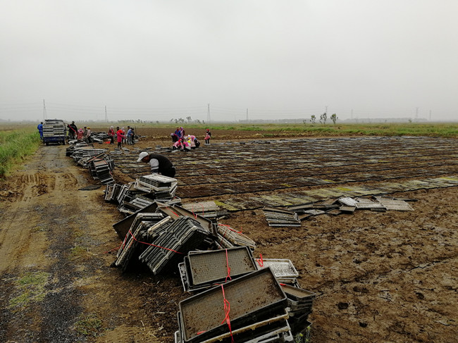 五月是水稻育秧落谷的黃金周期,大新農(nóng)場(chǎng)搶抓農(nóng)時(shí)迅速行動(dòng),育秧工作全面鋪開(kāi),田頭播地龍和暗化育秧同時(shí)進(jìn)行。5月4日,一分場(chǎng)四隊(duì)率先暗化秧擺盤(pán),條田工自發(fā)組織“運(yùn)秧”車隊(duì),將大棚暗化秧盤(pán)運(yùn)至田頭進(jìn)行擺盤(pán)。截止目前,自營(yíng)農(nóng)田育秧已播156700盤(pán)。(大新農(nóng)場(chǎng))
