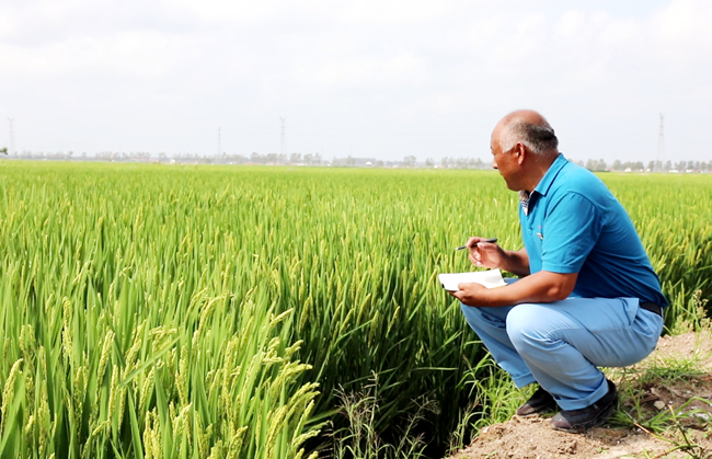 2013年,趙華兵種植大新農(nóng)場(chǎng)520畝水稻田,這是在鹽田里種植水稻,實(shí)行“以種代改”,這是他投身公司水稻自種自營(yíng)模式的第一年。為了仔細(xì)照看咸土地上的“鹽田寶貝”,他日夜穿梭在田間地頭。要想種好水稻,沒有巧勁,關(guān)鍵是要舍得跑,有不怕吃苦、敢于吃苦奉獻(xiàn)的精神。趙華兵育秧蹲點(diǎn)、走田頭、查病蟲,經(jīng)常是風(fēng)天一身土,雨天一身泥。