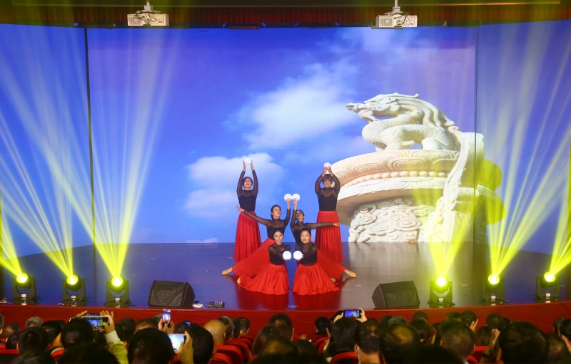 本次演出青口投資公司共選送開(kāi)場(chǎng)舞《燈火里的中國(guó)》、雙人合唱《人世間》主題曲兩個(gè)節(jié)目。為讓演出完美呈現(xiàn),6名女舞蹈隊(duì)員在工作之余辛勤編排、積極訓(xùn)練,加強(qiáng)協(xié)調(diào)配合,體現(xiàn)了積極樂(lè)觀、團(tuán)結(jié)向上的精神面貌。演出當(dāng)天,《燈火里的中國(guó)》隊(duì)員們帶著對(duì)祖國(guó)的熱愛(ài)和心中的夢(mèng)想,用婀娜優(yōu)美的舞姿向在場(chǎng)觀眾展現(xiàn)了一個(gè)燈火通明的中國(guó),配合大氣磅礴的背景視頻場(chǎng)面,點(diǎn)燃了現(xiàn)場(chǎng)的氛圍,贏得了觀眾一致好評(píng);在《人世間》主題曲的演唱中,吳典彤的歌聲悠揚(yáng)治愈,感人走心,唱出人間情暖,給觀眾以美的聽(tīng)覺(jué)享受。