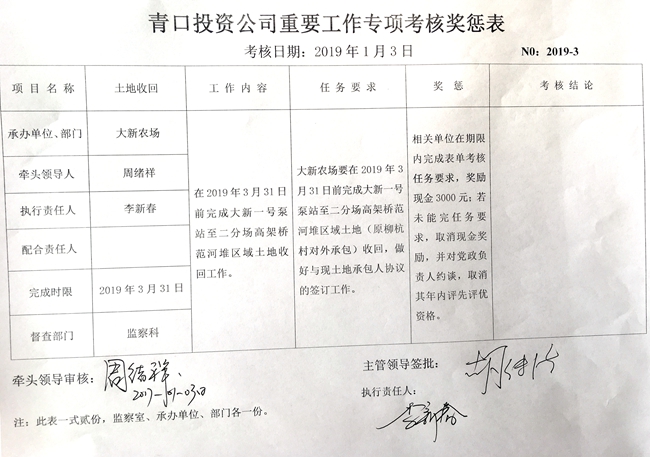 【表單考核】青口投資公司重要工作專(zhuān)項(xiàng)考核獎(jiǎng)懲表