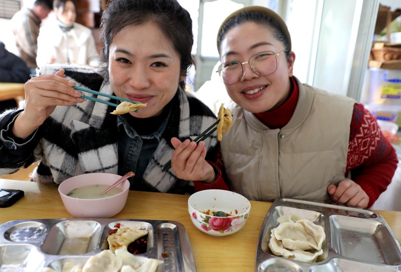 ? ? ? ?活動(dòng)現(xiàn)場,大家有說有笑,默契配合,有的揉面團(tuán)、有的拌餃餡、有的搟面皮、有的包餃子,大家互相切磋著包餃子的技巧,好不熱鬧,包出來的餃子也是形態(tài)各異,有元寶狀、小船狀、三角狀,還有獨(dú)具特色的花邊餃,女職工們紛紛拿著自己的勞動(dòng)“成果”,擺在手心互相比較著餃子的形狀,隨著一雙雙靈巧的小手來回舞動(dòng)著,在一片喜慶、溫馨的氛圍中,一個(gè)個(gè)口味不一的餃子就展現(xiàn)在大家面前。當(dāng)一盤盤熱氣騰騰的餃子端上桌,食堂瞬間香氣四溢,吃著自己親手包的餃子,每個(gè)人的臉上無不洋溢著滿足、幸福的笑容。