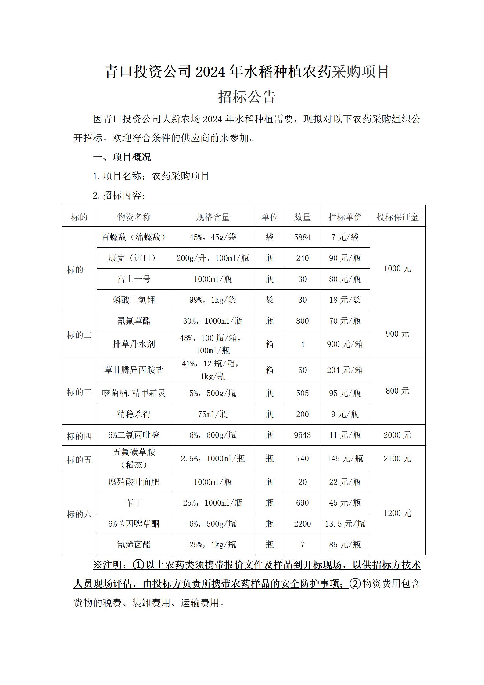 中標者信息于連云港市工投集團青口投資有限公司網(wǎng)站公示3日,公示期滿簽訂相應的物資采購合同《農(nóng)藥采購協(xié)議》。拒絕簽訂協(xié)議的,視為自動放棄,做廢標處理。