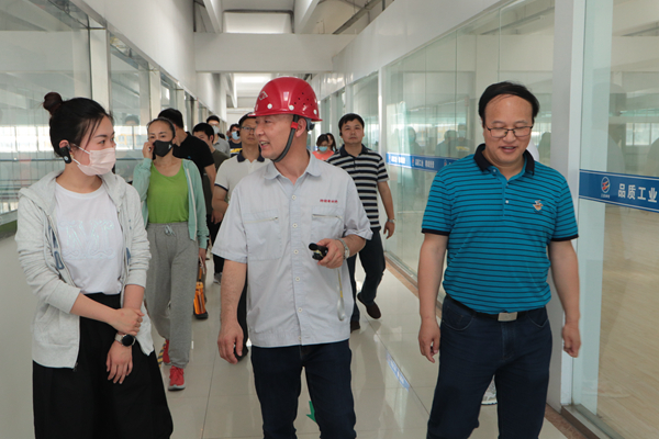 公司總經(jīng)理韓立新陪同全國紡織復(fù)合人才培訓(xùn)工程高級(jí)培訓(xùn)班專家一行參觀了企業(yè)文化宣傳欄、生產(chǎn)線等地,為專家們講解了公司發(fā)展歷程、產(chǎn)品種類、生產(chǎn)經(jīng)營等情況。