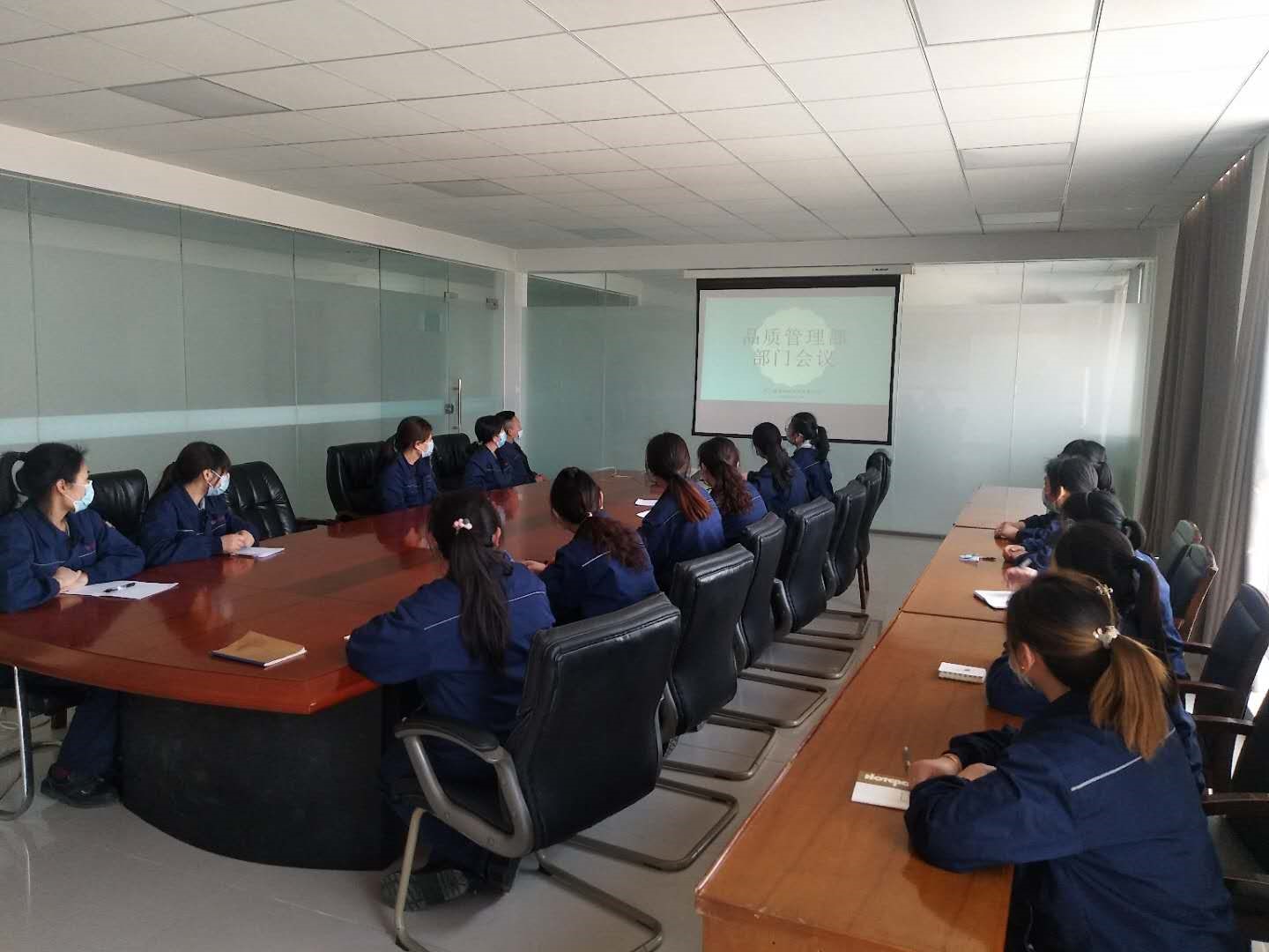 會上,品質(zhì)管理部部長助理顏甜甜與員工交流近年來品質(zhì)管理部遇到的種種問題,并結(jié)合ppt,詳細講解了員工之前不甚了解和有些模糊的知識點,對平時工作提出建議和要求。員工有不懂的,自由探討,直至弄懂為止。