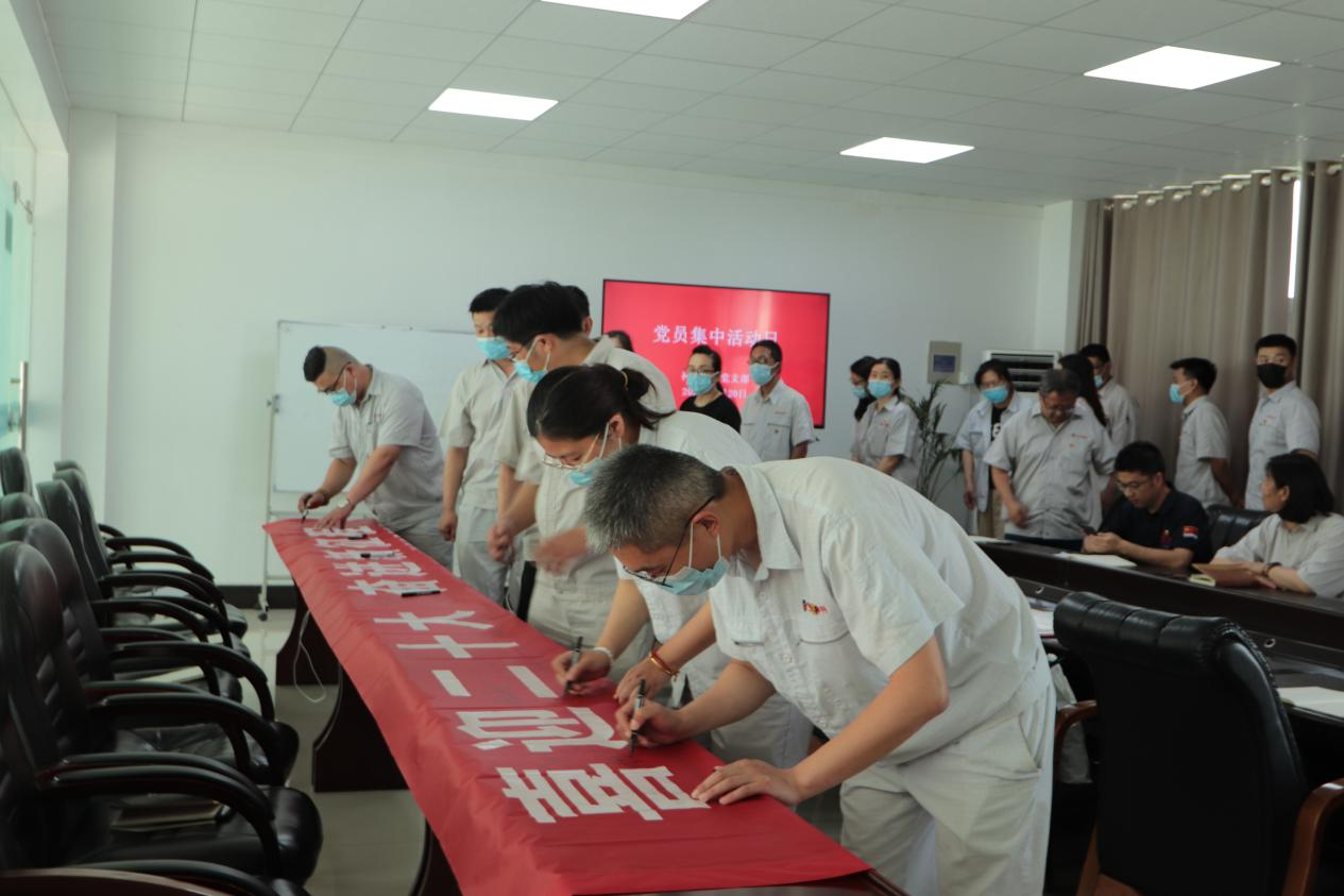 在七一即將來臨之際,公司組織全體黨員開展“喜迎二十大,奮進(jìn)新征程”黨員集中活動日。活動中,與會黨員集體宣誓,重溫入黨誓詞,回憶入黨初心,并在條幅上簽名,作出鄭重承諾。公司黨支部表彰一批優(yōu)秀共產(chǎn)黨員,激勵全體黨員守初心、勇?lián)姑⒐钥穗y、建功立業(yè)。