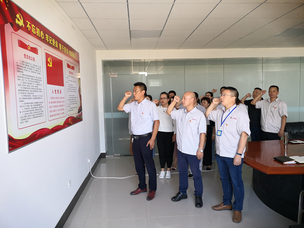 活動(dòng)中,面對(duì)鮮紅的黨旗,公司黨支部副書記袁忠作為領(lǐng)誓人,帶領(lǐng)全體黨員一起高舉右手,再次莊嚴(yán)宣誓。鏗鏘恢宏的誓詞,強(qiáng)烈震撼著在場(chǎng)的每一位黨員,一字一句,神圣而豪邁,體現(xiàn)了黨員對(duì)中國(guó)共產(chǎn)黨的無(wú)限忠誠(chéng)。