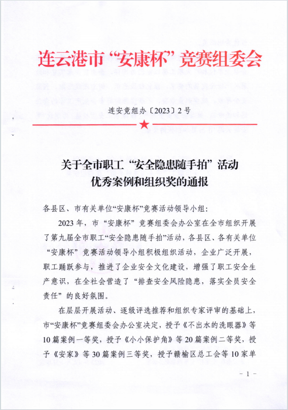 近日,市“安康杯”“安全隱患隨手拍”活動(dòng)獲獎(jiǎng)作品揭曉,公司員工邱菊參賽作品《不出水的洗眼器》獲得一等獎(jiǎng),陳士亮參賽作品《無用的燃?xì)鈭?bào)警器》獲得二等獎(jiǎng)。(神特宣)