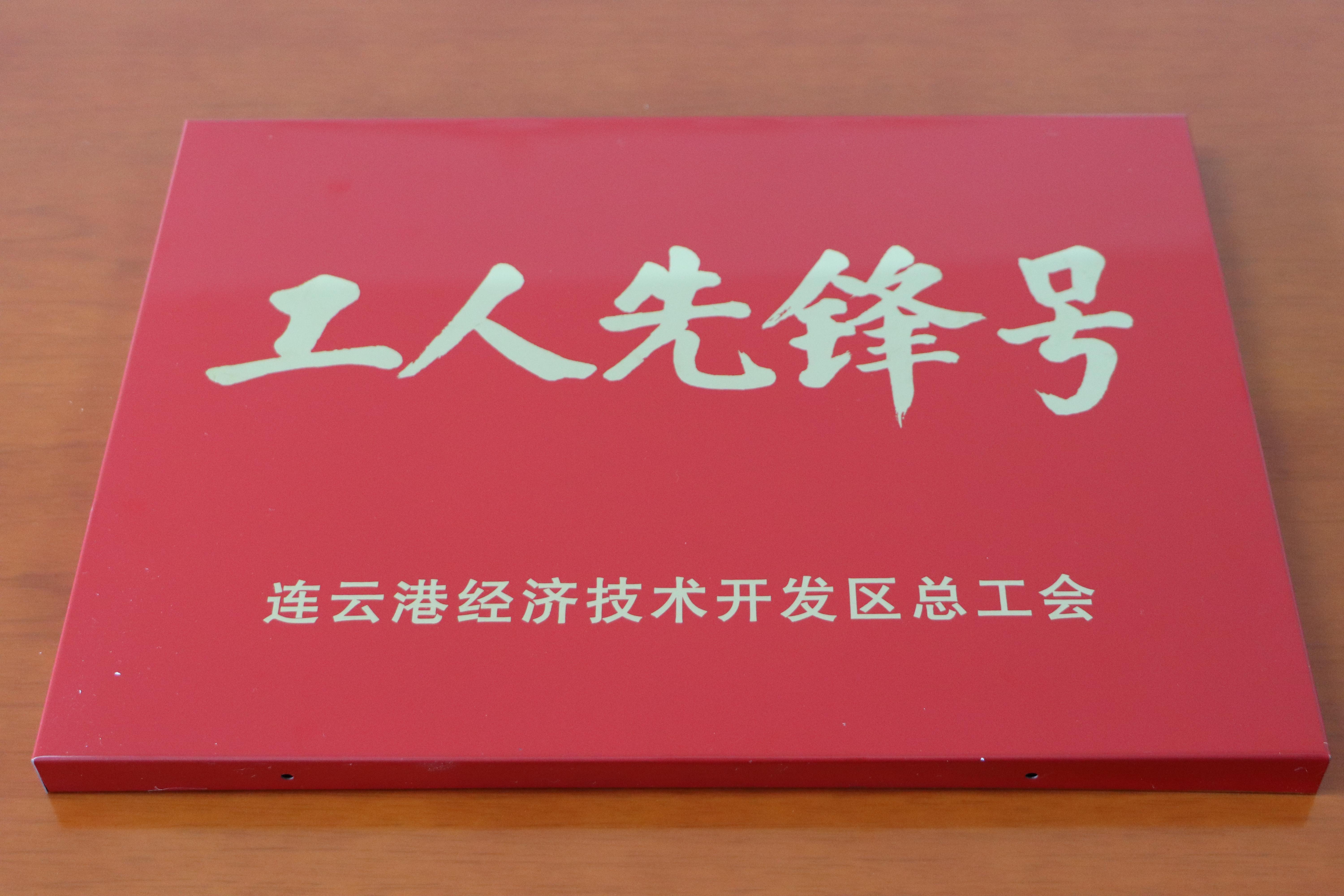 近日,公司捷報頻傳,自生產線一名員工被授予市勞模稱號后,5月11日上午,公司又從猴嘴街道辦事處工會領回獎牌,公司生產丙班被授予“連云港經濟技術開發(fā)區(qū)工人先鋒號”。