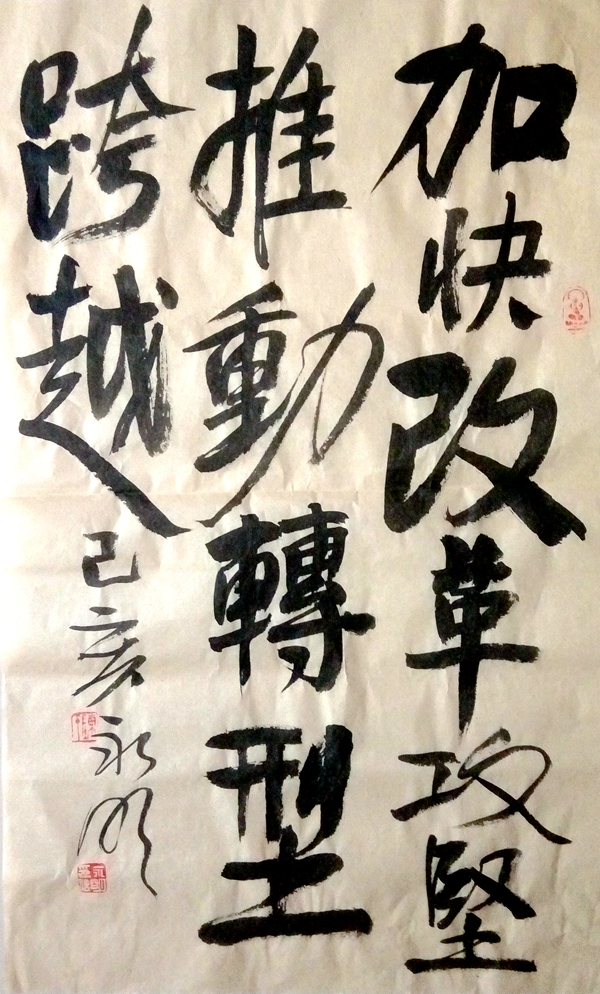 職工陳永明書(shū)法作品《加快改革攻堅(jiān),推動(dòng)轉(zhuǎn)型跨越》